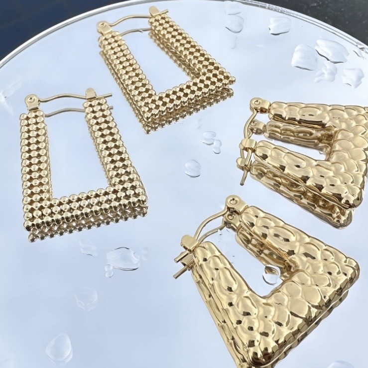 EARRINGS, 18K GOLD PLATED STEEL